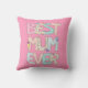 Célébrez la fête des mères avec ce mignon coussin rose qui comporte un texte fantaisiste qui dit "Meilleure maman jamais".
