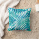 Coussin Feuillage de palmier bleu vert et blanc côtier