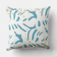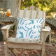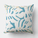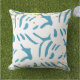 Coussin Feuilles Abstraits Aqua Bleu et Blanc avec Faux Or