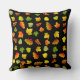 Coussin Feuilles d'automne dorées, vertes, orange sur noir
