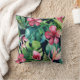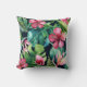 Coussin Feuilles de palmier tropical foncé Hibiscus floral