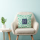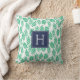 Coussin Feuilles verts et Monogramme bleu