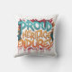 Un coussin vibrant et captivant avec l'expression "Fiers Patrimoine Endures" en lettres de blocs multicolores, arrangé en motif circulaire, créant un design visuellement frappant et mémorable.