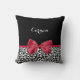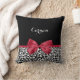 Personnalisez en ajoutant le nom de n'importe quelle fille à ce carré empreinte de léopard blanc et noir girly lancer l'oreiller avec un joli ruban rouge vif attaché dans un arc élégant. Ce design poster de animal à la mode est une image imprimée à plat, et ne contient pas de ruban réel.