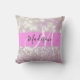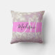 La parties scintillant de bokeh pastel lilas brille par le nom du monogramme et l'oreiller de lancement initial. Votre nom personnalisé et votre monogramme sont écrits dans un élégant script écrit à la main avec un arrière - plan rose. Un cadeau d'anniversaire ou de Noël parfait !