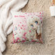 Coussin Fille mignonne avec le chat blanc sur le gisement