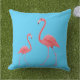 L'oreiller extérieur est montré dans une couleur solide de bleu turquoise avec une jolie impression flamingo. Customisez ce coussin ou achetez tel quel. Image stock