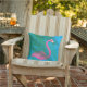 Ces amusement et coussin extérieur tropical est décoré d'un flamant rose fuchsia et des palmettes sur un arrière - plan lumineux de ciel bleu, faisant lui l'accessoire parfait d'été pour la maison de plage, à cottage, à patio, à plate-forme ou à espace piscine.