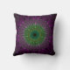 Ce coussin de lancer coloré rayonne d'un centre vert à un extérieur pourpre comme une fleur s'ouvrant à des perles de lumière. Un design complexe et abstrait qui a un effet d'illusion de verre.