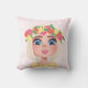 Coussin Fleur de dessin fille sur rose