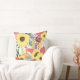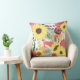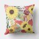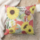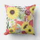 Des images aquarelles de tournesols dorés et de rose marron et rose se combinent pour former un joli intérieur sur cet oreiller coloré. Avec les images de fleurs sont doux vert et violet lavande feuilles. Les images sont placées sur un arrière - plan blanc. Les deux côtés du coussin ont le même design.