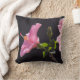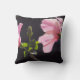 Rose et Noir - Cet oreiller de 16 pouces est une belle façon d'ajouter une touche audacieuse mais douce moderne du jardin. La fleur d'hibiscus, sur la photo originale de MaeFlowers sur le coussin, est rose bubblegum contre un arrière - plan presque noir. La photo est un profil de la fleur en pleine floraison, avec ses pétales rouillés et sa tige de pollen jaune. Le soleil brille à travers les feuilles verts printaniers, et un nouveau bourgeon fleuri émerge. L'autre côté du coussin montre la vue complète de la deuxième fleur, derrière la fleur en profil.