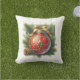 Accentuez la décoration de votre porche ou patio avec ce coussin de Noël. Ce coussin présente un design à fleur dorée sur un ornement rouge, sur fond de branches de pin, créant un accent vintage attrayant. Art IA conçu par Susang6.