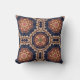 Un coussin avec un motif répétitif d'éléments décoratifs ornés en forme de fleurs, d'étoiles et de soleil.