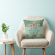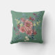 "Bloom where you are Planted" est le message sur le devant de ce coussin inspirant. Le message est au centre d'une bannière vert clair, bordée de fleurs roses, crème et bleues douces, avec une touche de pourpre et d'or. L'image est placée sur un arrière - plan vert turquoise moyen. L'arrière de la coussin a une deuxième image de bouquet floral, sans le texte.