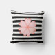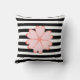 Magnifique et élégante fleur en forme de cœur rose sur fond rayé noir et blanc Coussin de jet.