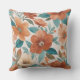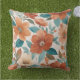 Coussin Fleurs beige, turquoise et rouille