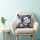 Coussin Fleurs blanches et roses sur bleu foncé.