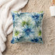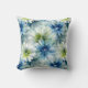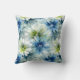 Coussin décoratif fleurs bleues et vertes à l'aquarelle.