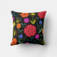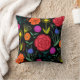 Ces fleurs de style BD aux couleurs vives ressortent vraiment sur le fond noir profond du dernier modèle de coussin original de Leslie Sigal Javorek.