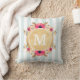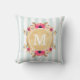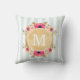 Jetez l'oreiller avec motif rayé à la menthe, fleurs rose aquarelle et faux feuille d'or monogramme personnalisé.
