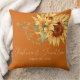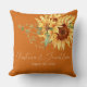 Ce coussin de garde mariage romantique est décoré dans un style floral. L'arrière - plan est une élégante couleur orange brûlée avec des tournesols couleur or. Un délicat bouquet sauvage est représenté en haut, avec les noms du couple imprimés ci-dessous.