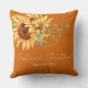 Coussin Fleurs de soleil d'aquarelle sur orange brûlé