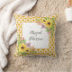 Tournesol aquarelle, cadre doré et motif géométrique jettent oreiller. Un joli design qui présente un beau bouquet de tournesols aux coins d'un cadre doré et d'un motif géométrique en jaune.