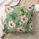 Coussin Fleurs d'Hibiscus Feuilles verts, rose-bleu