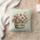 Un oreiller avec un pot fantaisiste et élégant de fleurs. Couleurs vert, rose et crème. Installé dans un pot vert avec un tissu à carreaux. Ambiance shabby vintage.