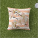 Coussin Fleurs florales doux orange pêche bandes blanches
