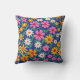 Voici de belles fleurs de boho rétro motif en rose, orange, jaune et blanc avec des branches et feuilles verts sur arrière - plan bleu marine. C'est un coussin décoratif magnifique pour votre maison.
