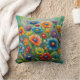 Fleurs printanières colorées illustration sur l'oreiller vert arrière - plan lancer