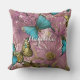 Coussin Fleurs roses blanches Papillons Turquoises et Gold