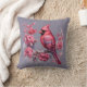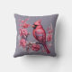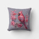 Coussin Fleurs roses du cardinal rouge d'hiver sur gris