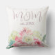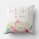 Cette coussin personnalisée présente un thème floral sain. Un bouquet de fleurs roses et blanches est placé au fond. Le titre de maman est imprimé dans une police manuscrite avec l'année établie.