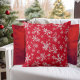 Coussin Flocon de neige élégant rouge, blanc et argent