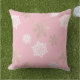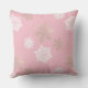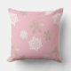 Coussin flocons dorés et blancs contre rose pâle