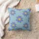 Motif de fleurs graphiques. Chaque fleur a 8 pétales bleus, le centre est jaune. Même impression des deux côtés du coussin. Une couleur arrière - plan solide peut être customisée pour créer des effets correspondant à votre goût.