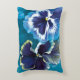 Coussin floral de beaux-arts. Les pensées impriment des illustrations originales sur le papier coloré dans la gouache par Sarah Trett. Copie vibrante pour apporter un contact de couleur de ressort à un salon ou à une chambre à coucher dans des tons bleus, mauve, jaunes et turquoises.