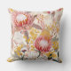 Le coussin floral présente des fleurs de protéa roses frappantes au feuillage jaune dans un design qui équilibre les tons terreux avec des reflets floraux subtils. Les protéines sont des symboles de force, de courage et de résilience puisque le plante survit dans des conditions climatiques extrêmes.