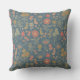 Ce carré lance l'oreiller présente des fleurs stylisées dans les tons corail et vert olive sur un arrière - plan bleu denim.