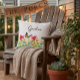 Accentez le décor de votre espace de vie extérieur avec ce joli oreiller à fleurs. Ce coussin extérieur protégé par les intempéries présente une illustration de pavots rouges, de Susan aux yeux noirs et de fleurs de boutons bleus au célibataire. Vous y trouverez également de la verdure et un papillon. Les fleurs colorées sont affichées sur un arrière - plan blanc crémeux. Personnalisez le texte sur ce coussin avec vos propres mots ou achetez comme indiqué avec "jardin" dans une police de script.