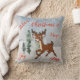 Joyeux Noël & Joyeux coussin de nouvelle année avec un bébé cerf joyeux courant dans une belle aquarelle arrière - plan de forêt enneigée. Customisez-le avec votre message personnel pour ajouter une touche spéciale. Pour plus de personnalisation, cliquez sur le lien "Personnaliser" et utilisez notre outil de conception pour modifier ce modèle.