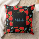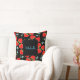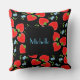 Coussin Fraises rouges monogrammes et Forgetmenots bleus