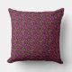 Add a little cheer to your day with a whimsical, hand-painted watercolor floral patterned pillow, featuring playful fuchsia pink to orange daisy blooms dancing on a plum purple background.