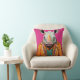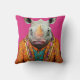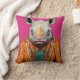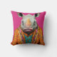 Coussin décoratif rose chaud avec design rhinocéros funky. A la fois coloré et décalé, parfait pour ceux qui aiment les créations uniques.