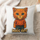 Vivid orange cat mascot wearing a ripped tee, bold HISS OFF lettering, and bright blue eyes. Neon-like shading on black background creates an edgy, playful streetwear vibe for cat lovers.