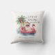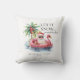 Funny Santa Claus Tropical Beach Coussin de Noël. Ce coussin de vacances ludique dispose d'un Père Noël décontracté en lunettes de soleil, se prélasser sur un flamant rose flottant dans l'océan. Un palmier festif orné de décorations coule à proximité, face à de douces vagues d'aquarelle. L'expression "Let It Snow... Somewhere Else !" est imprimé en haut dans une élégante typographie de script. Votre nom de famille et l'année peuvent être customisés en bas, ce qui en fait un accent amusant et personnel pour votre maison. Le design est présent de part et d'autre de la coussin, ajoutant une touche tropicale joyeuse à votre décor de Noël. Parfait pour les maisons de plage, les maisons côtières, ou pour ceux qui préfèrent célébrer la saison au soleil, que vous soyez en Floride, Hawaii, les Bahamas, ou simplement rêver de vibes d'îles.