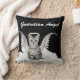 Notre Chat Ange a un halo et des ailes et est un Tabby Gris assis sur des nuages moelleux dans une nuit étoilée. Fait un coussin unique et adorable pour l'amoureux des chats. Un côté a le texte "Guardian Angel" que vous pouvez changer en un nom ou un autre message.
